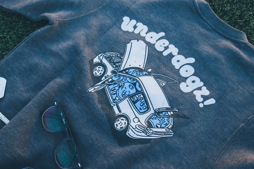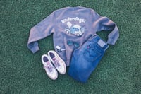 Crewneck true to size super soft material in various colors front sports chenille embroidery done in grayish blueish color with a black background. The back of the crewneck has screen-printed artwork showcasing one of Honda's most love car from the 90s the EG6 SIR II done in sparkly silver.